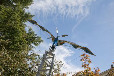 Reproduction d’Eole, l’avion de Clément Ader, qui a inspiré le logo de l’établissement.